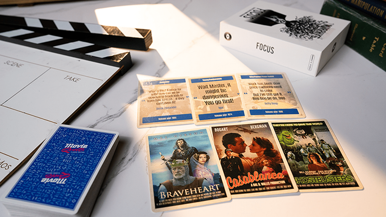 FOCUS by Craig Petty begins as an ordinary set of Movie Trivia Cards. But beneath the quotes and poster artwork lies a series of magical plot twists that every film geek will obsess over!