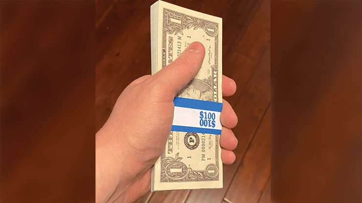 With Ten Grand Prix 1 Dollar to 100 Dollars by Diamond Jim Tyler a stack of one-dollar bills magically and visibly change to all one-hundred dollar bills!