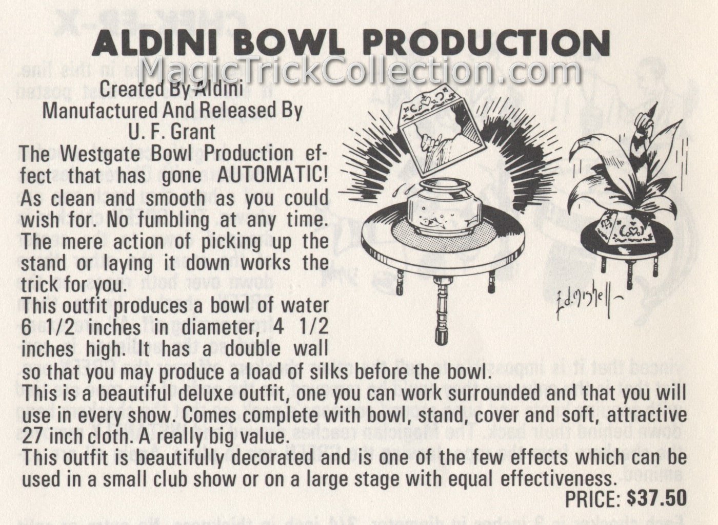 Aldini Bowl Production Released by UF Grant & MAK Magic represents an improved version of the Westgate Bowl Production allowing for the effect to be automatic.