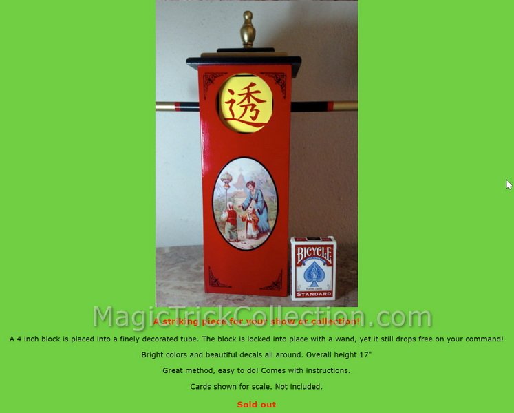 Just a courtesy reminder that used or vintage magic props, typically 30-60 years old, are not in new condition and will show some signs of aging and wear from the years of performances or storage. Please be sure to view the pictures and description provided to ensure the item meets your acceptance before purchasing. Questions are always welcome if you’re not sure of something.