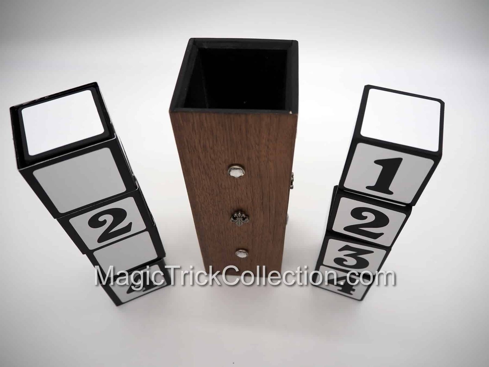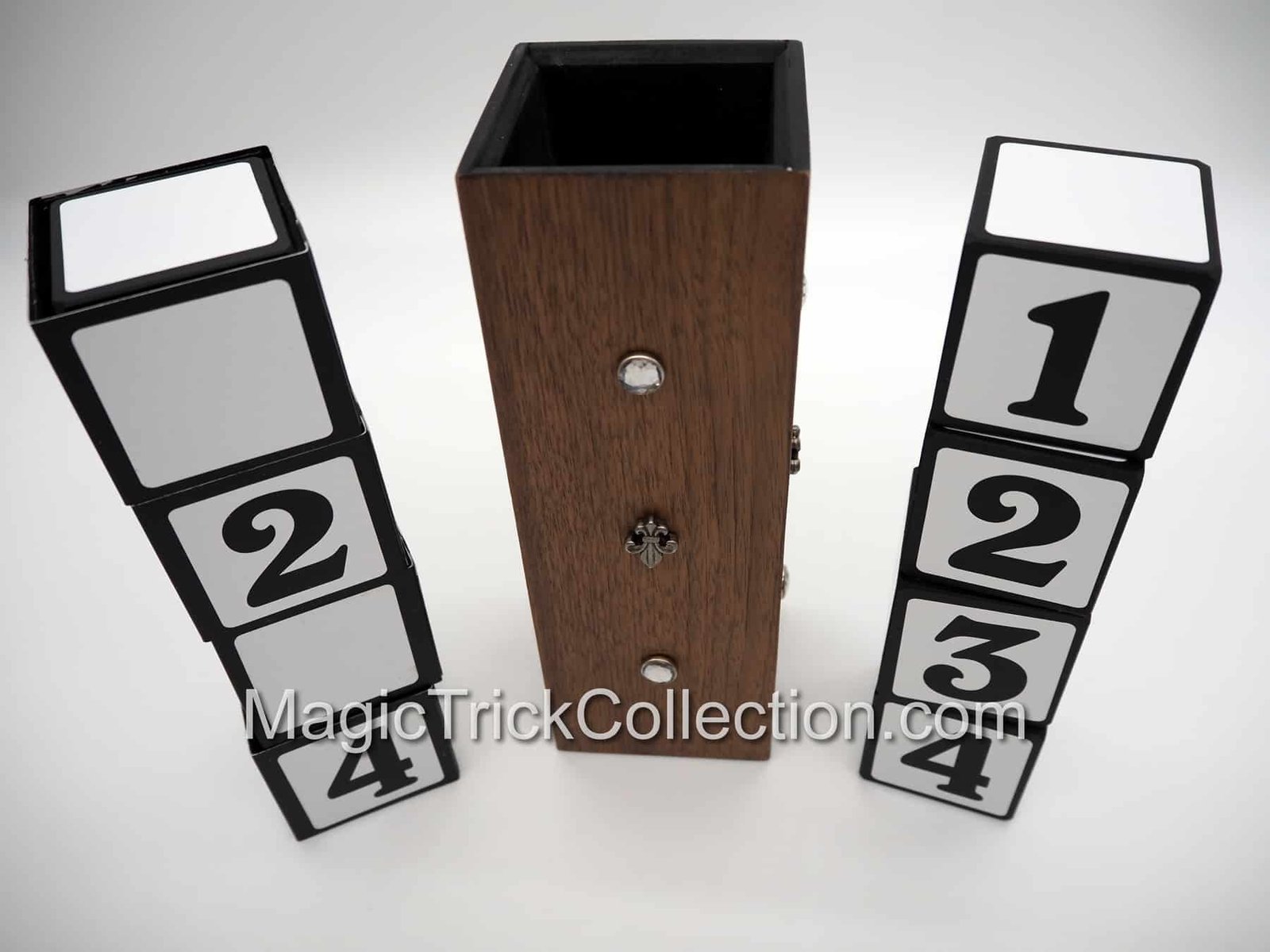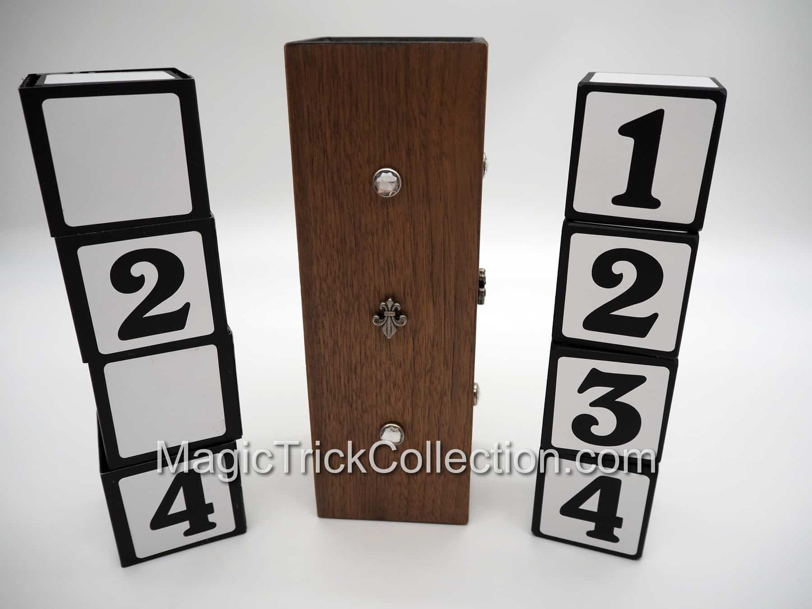 The basic effect consists of two stacks of blocks number from 1-4. The blocks are assembled in a manner in which the sequence of numbers on each stack are different. Then one of the stacks is covered with a wooden tube. When the tube is removed, number sequence of the stack that was covered now matches the other stack. This repeated several times in many configurations but the blocks always match. Finally the spectators choose the sequence for the last surprise match.