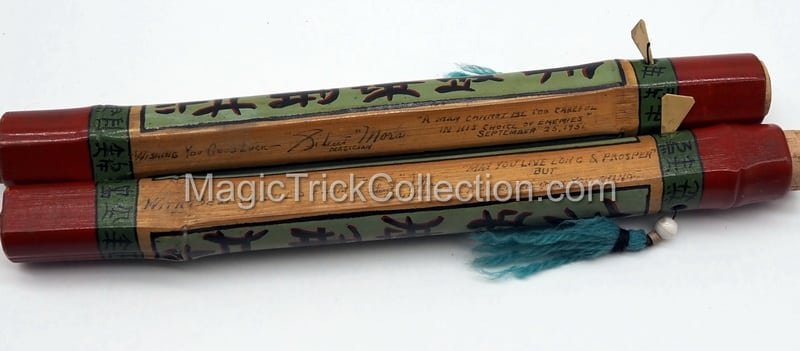 Today, Mora is recognized by magic collectors who eagerly seek out his handmade props such as his custom-made and decorated bamboo Chinese wands, fans, and other effects.